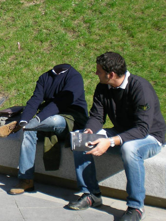 Ho trovato anche questa foto di Matteo che parla da solo fuori dal Prado…