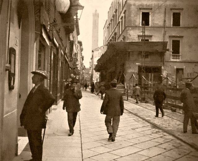 Le torri Asinelli e Garisenda erano collegate da un ponte a 34 metri di altezza, costruito dai milanesi nel 1353. Il ponte fu distrutto dall’incendio dell’Asinelli il 10 agosto 1398. Se si osserva con attenzione, ancora oggi si possono osservare sulla Garisenda i fori dove furono inserite le travi utilizzate per la costruzione del ponte.