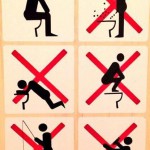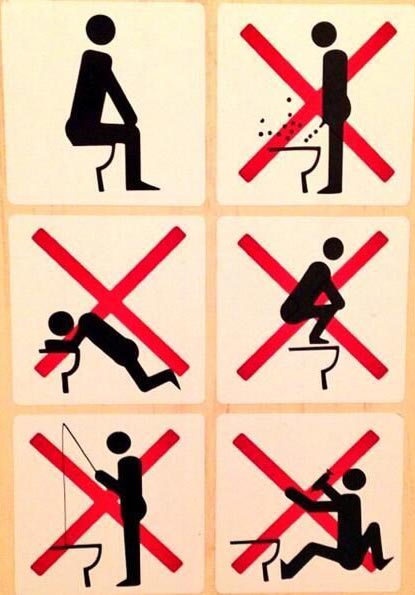 Singoli cartelli sui wc dicono che non ci si può drogare in toilette.