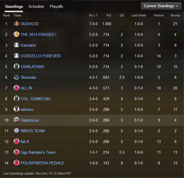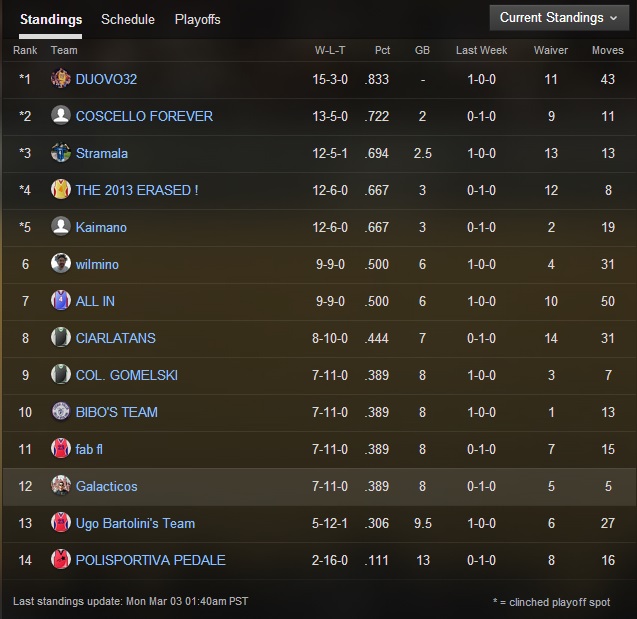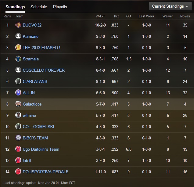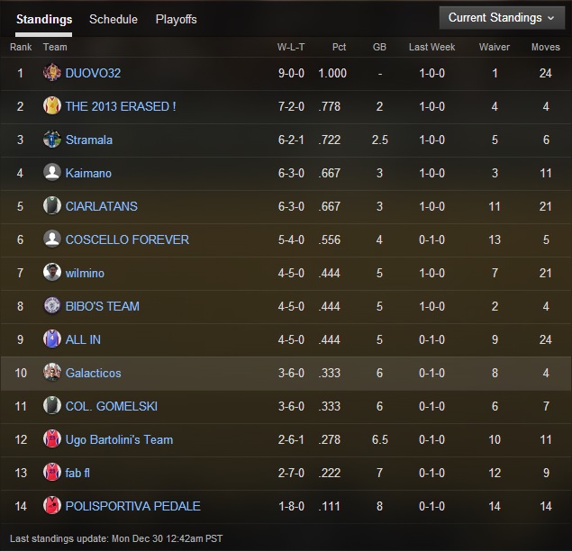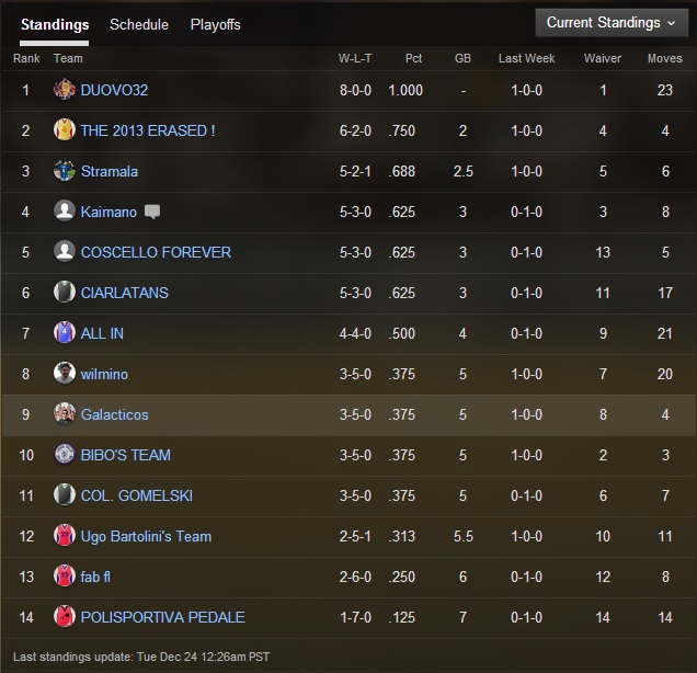 Duovo32 (che noia) Kaimano e Coscello sono i primi tre . I Wilmino vincono s tornano all’ottavo posto.