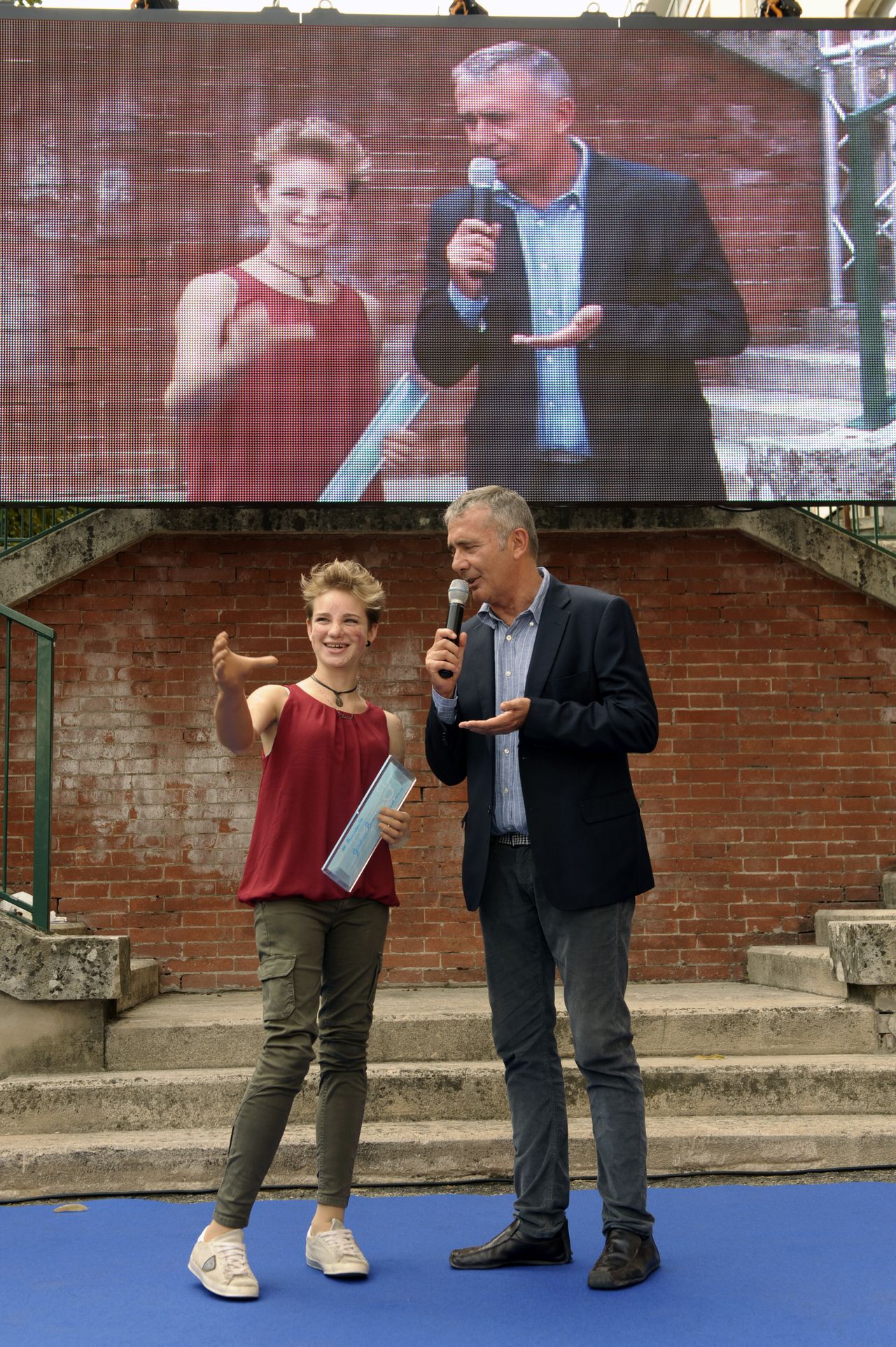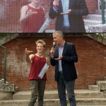 e terze classi delle scuole medie Scotti. Willy, che si vede nella foto sul palco, era emozionatissimo. In platea anche suo padre Aderamo, al 100% on tour come Happy Hand. Regista assoluto della kermesse ischitana, Cesare Covino, semplicemente unico. In serata ci hanno raggiunto Giulia Ghiretti, con la sua bellissima famiglia, Cristina Bignardi col figlio Francesco e Carlo Battelli con Lucia. Saranno i protagonisti della sera odierna al Teatro Polivalente di Ischia. Sta piovendo, ma abbiamo prenotato il sole per le 12: alle medie “Scotti”, dopo un “Willy torna a scuola” dedicato alle prime classi, libereremo nel cielo 500 palloncini rossi per dire stop alla mortalità infantile nel mondo. Lassù, ai piani alti, speriamo che ci ascoltino. Lerry