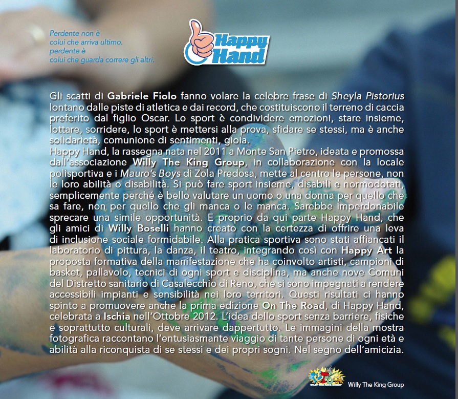 HAPPY HAND/ Abbiamo incominciato nel 2010 con due Quinte elementari della scuola San Giuseppe di Bologna. Willy parlò a una trentina di bambini. Ieri a Ischia abbiamo presentato il progetto educativo sulla disabilità del Wtkg, “Willy torna a scuola” a 600 studenti, le seconde