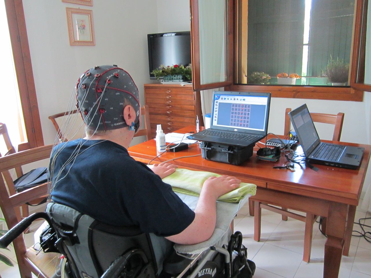 Ci sono un olandese un tedesco e tre italiani….. Sembra una barzelletta, ieri a Castel D’Aiano sono venuti a trovarmi questi ragazzi che lavorano al progetto Tobi.Alla mattina abbiamo fatto una prova con un caschetto a 64 elettrodi, da questa prova hanno visto quali erano i migliori 16 punti di contatto.. Al pomeriggio invece abbiamo utilizzato un caschetto con solo 16 elettrodi (quelli che avevano scelto alla mattina) ed il risultato è stato ottimo, sono riuscito a completare tutti gli esercizi.