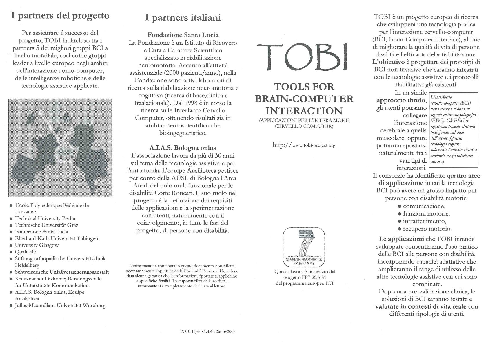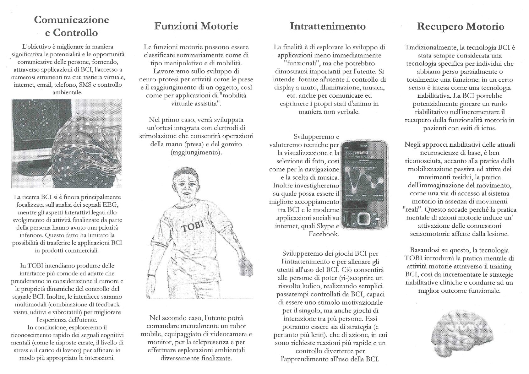 Tobi è un progetto europeo di ricerca che svilupperà una tecnologia pratica per l’interazione cervello computer. Vai al progetto. Guarda i video .