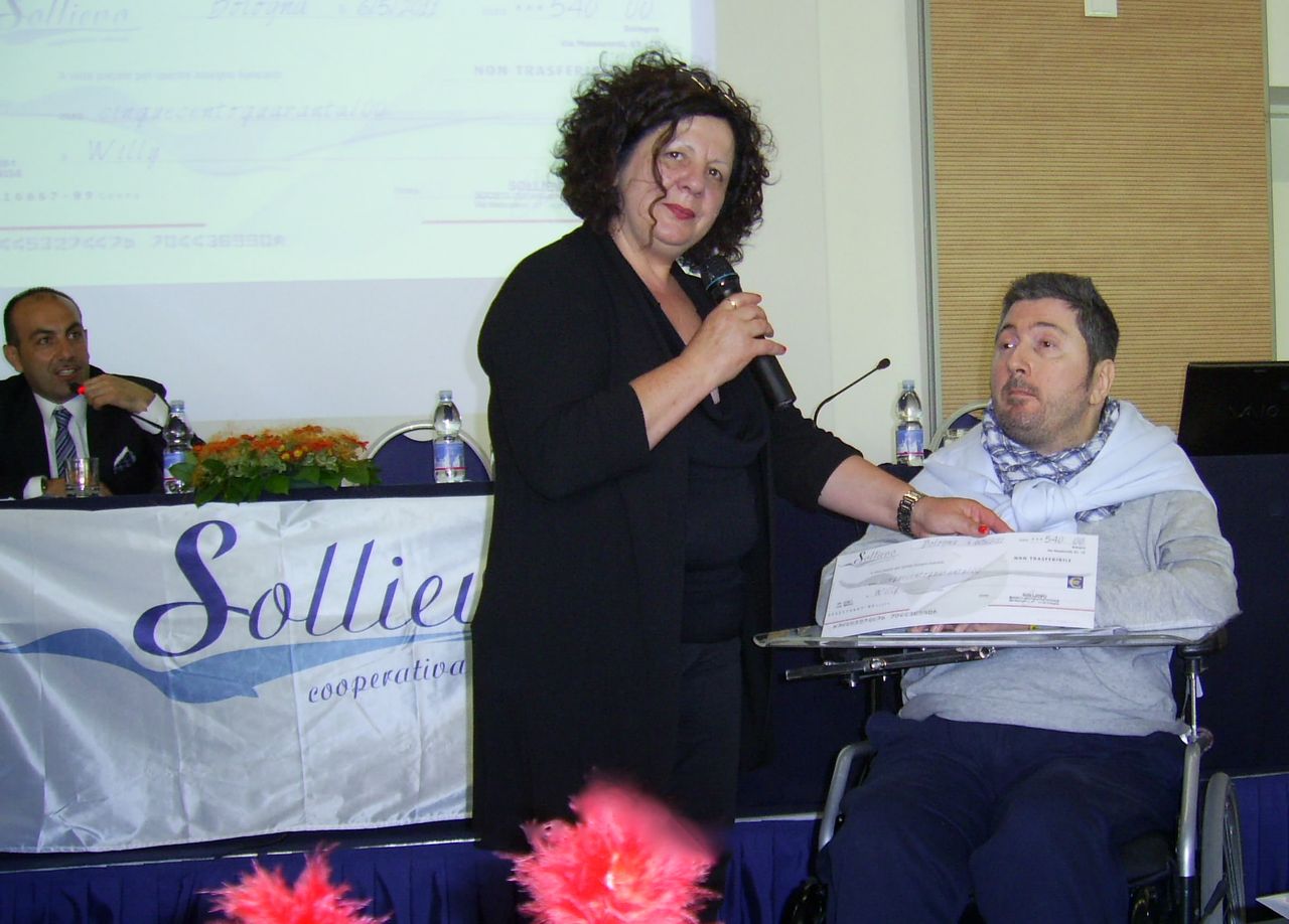 residenze. Il 5×1000, utilizzato così, come fa cooperativa diretta da Giuliano Fasolino, che si avvale di persone straordinarie come la moglie Maddalena, o la sorella Gloria, che mi ha emozionato tantissimo quando ha detto di aver letto il mio libro,ha un senso e un valore davvero importante. Grazie a tutti, grazie a Sabrina Trapella, alla quale ho strappato l’impegno di portare i suoi ragazzi a Happy Hand, tra poche settimane, a Monte San Pietro. Grazie a tutti anche per il maxi assegno con cui mi sono fatto volentieri immortalare di fianco a Gloria.