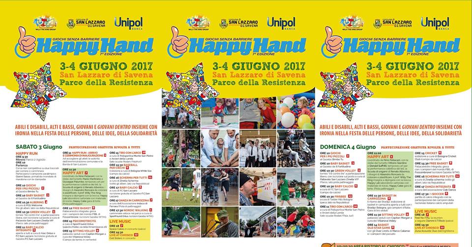 Anche quest’anno HappyHand il 4 e 5 giugno a San Lazzaro di Savena nel parco della Resistenza