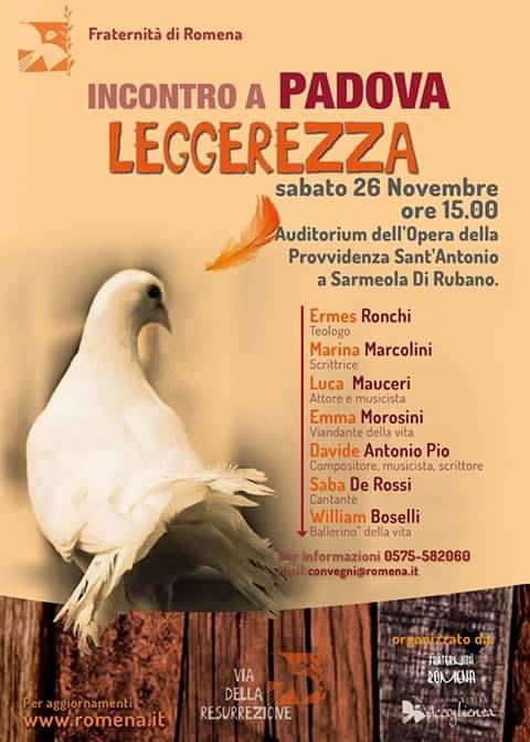 Romena “si sposta” a Padova: sabato 26 grande giornata di incontro sulla “Leggerezza”