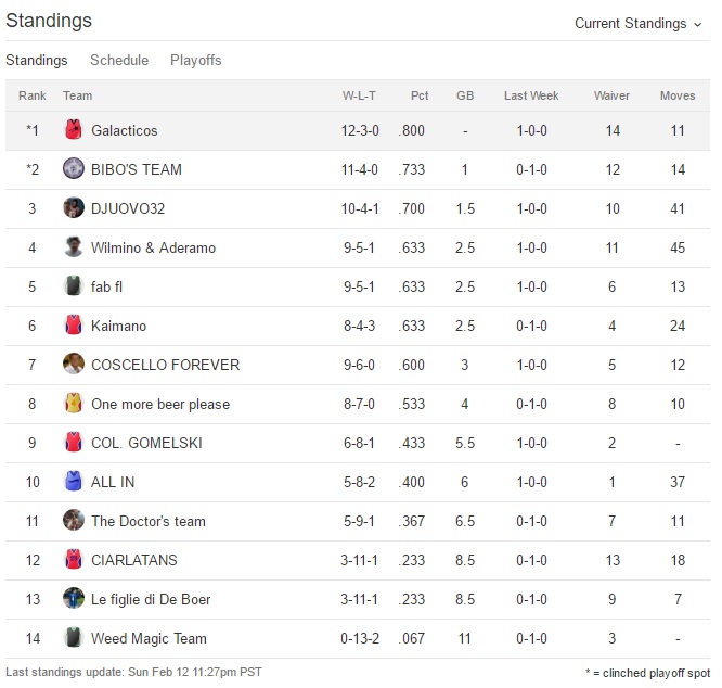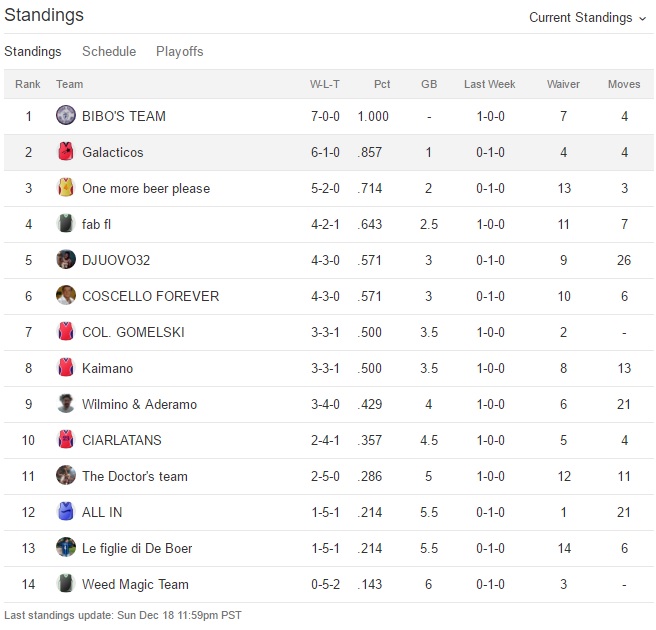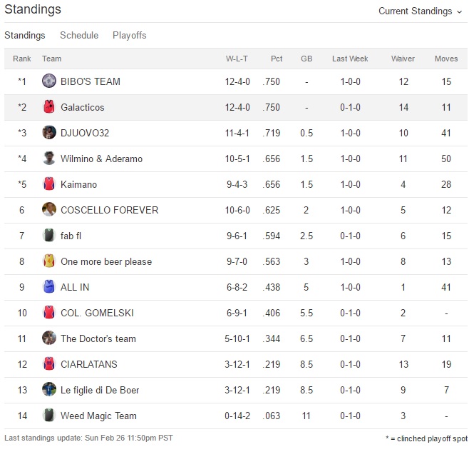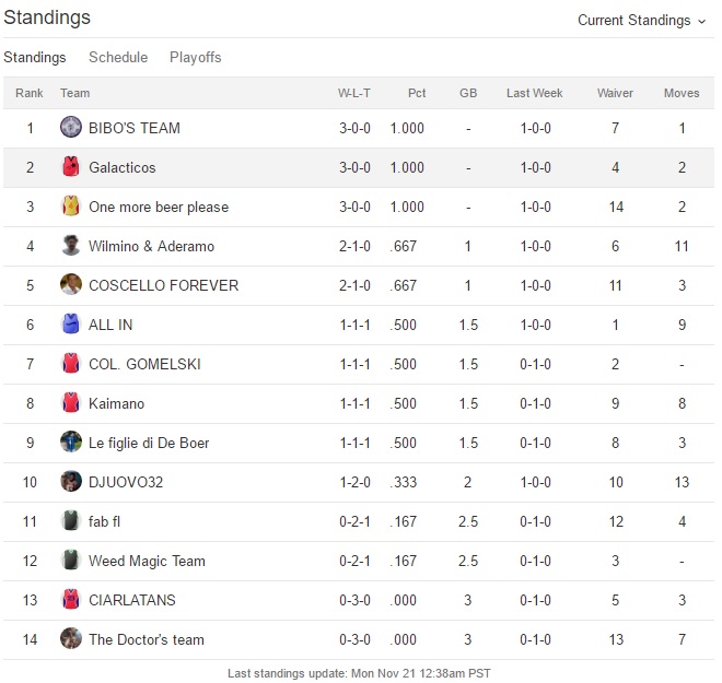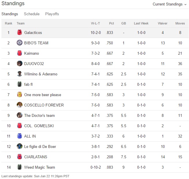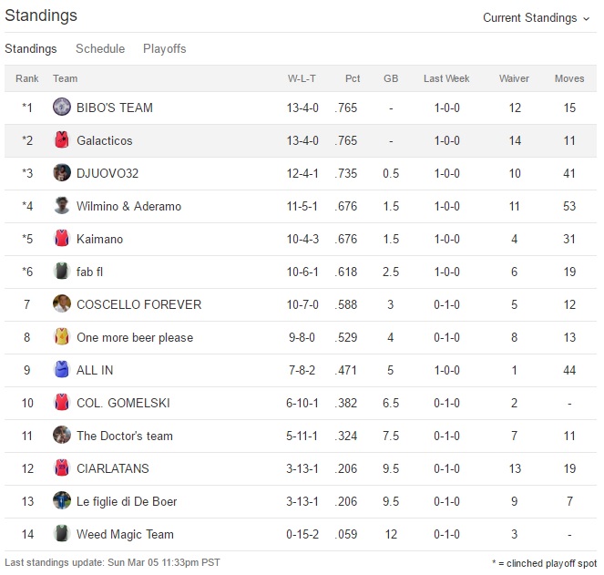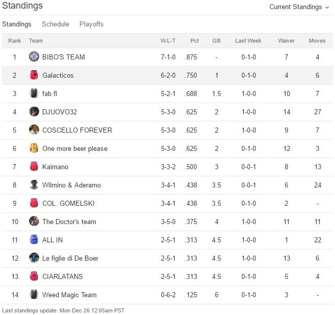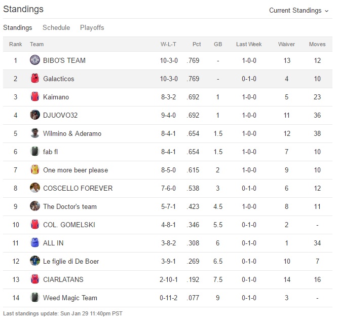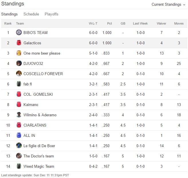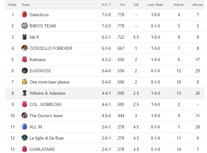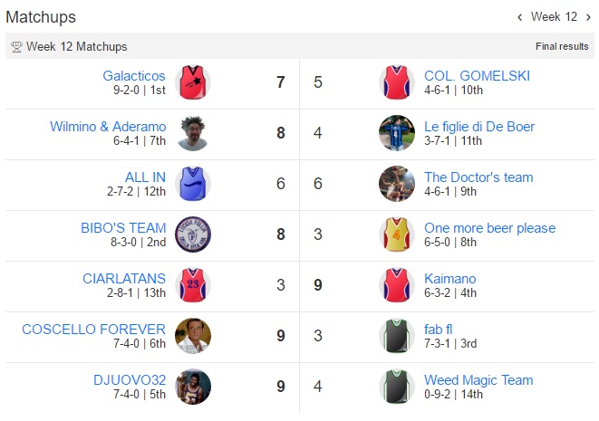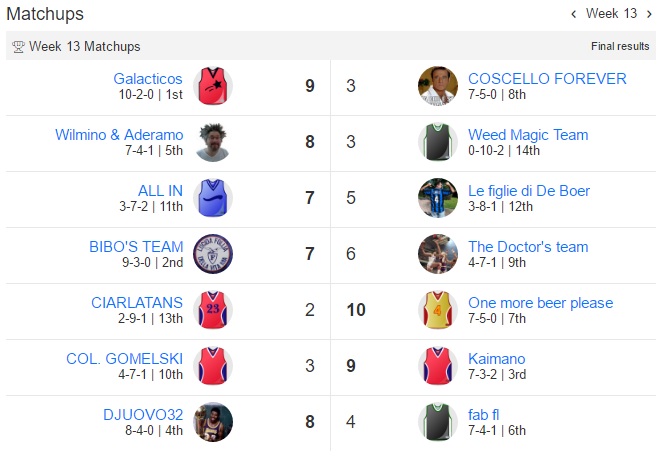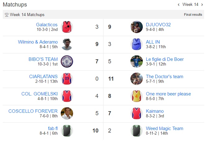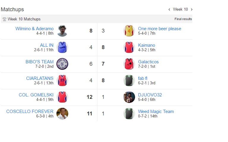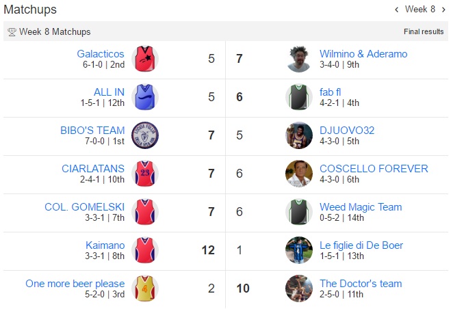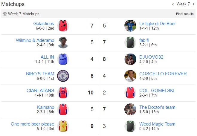 Udite udite Bibo perde la prima partita dall’inizio del campionato,Galacticos perde la seconda di seguito e anche One more beer please perde.Bibo sempre al comando,Galacticos secondo e Fab terzo