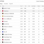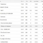 Bibo e Galacticos primi a 10 vinte e tre perse. Terzo Kaimano 8 v 3 perse e 2 pareggi .Wilmino & Aderamo 8v 4 perse 1 pareggio.