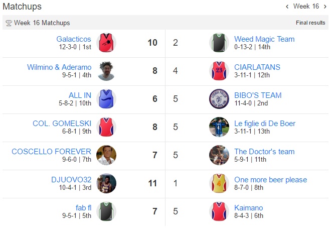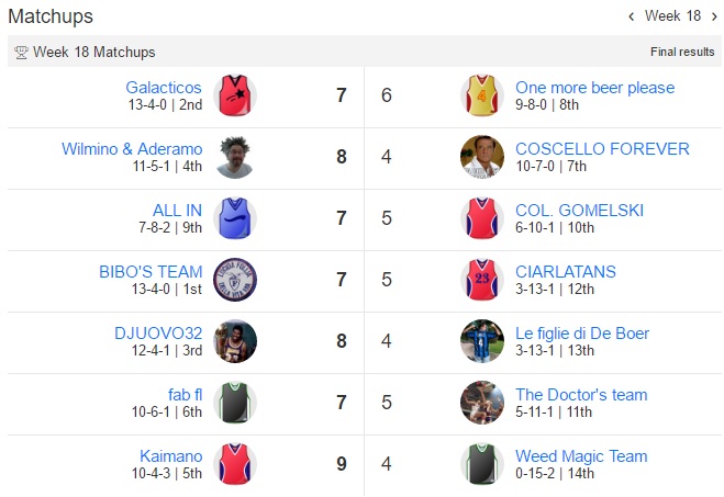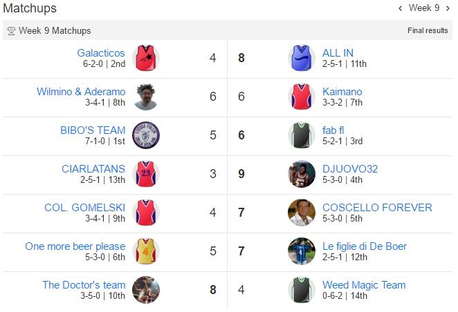 Bibo perde nello scontro al vertice con Galacticos ,Fab è sempre terzo e Wilmino & Aderamo vincono il derby con One more beer please.