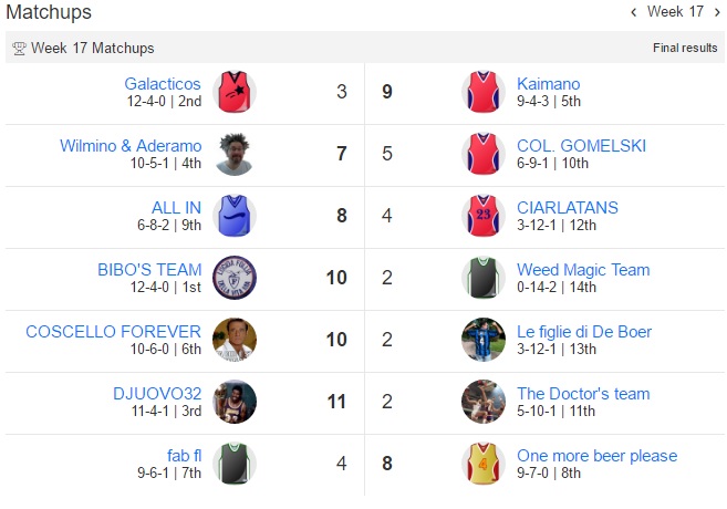 Prima playoffs passano al turno successivo Galacticos e Wilmino & Aderamo ,Bibo’s e DjUovo32