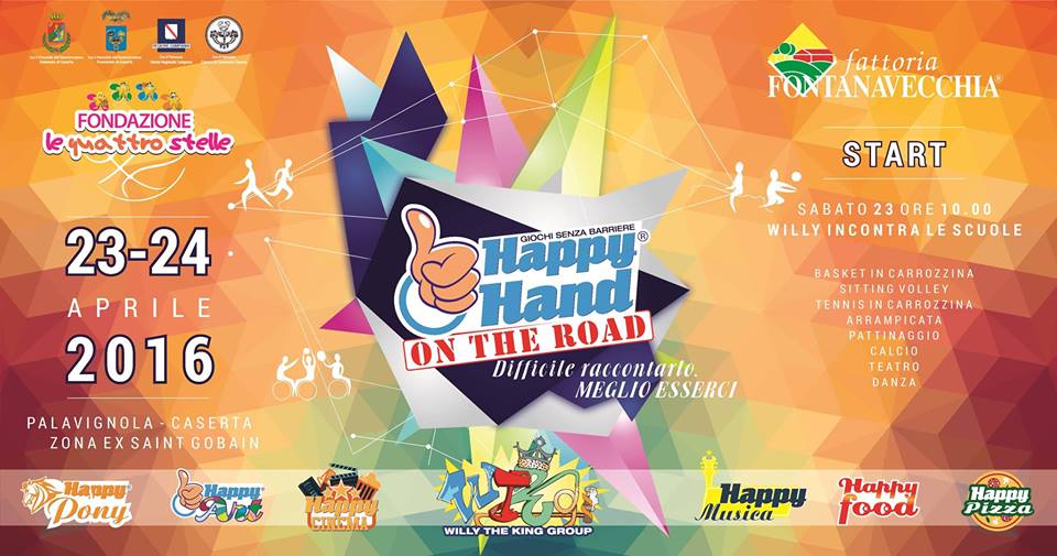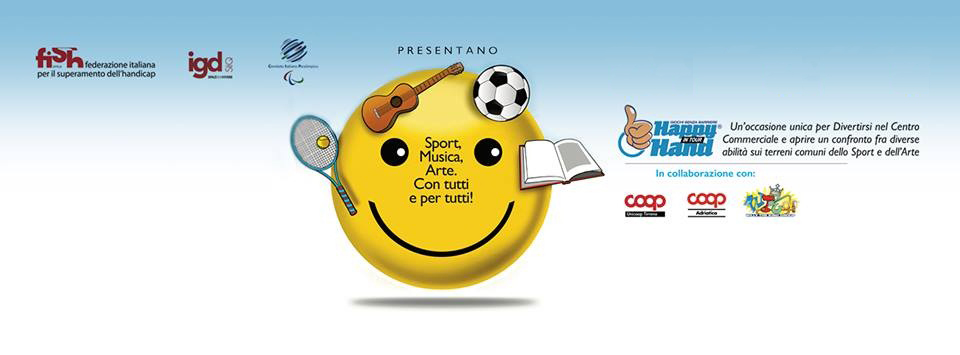 Dopo il successo ottenuto nel novembre dello scorso anno ad Ascoli Piceno – così come accade da molti mesi in tanti centri commerciali di tutta Italia – sta per tornare nelle Marche, ed esattamente a San Benedetto del Tronto, il ciclo di eventi denominato Happy Hand in Tour, voluto dalla Società IGD (Immobiliare Grande Distribuzione), dalla FISH (Federazione Italiana per il Superamento dell’Handicap) e dal CIP (Comitato Italiano Paralimpico), insieme a COOP e all’Associazione WTKG (Willy the King Group), per trasmettere una nuova cultura sulla disabilità, tramite lo sport e l’espressione creativo-artistica.