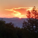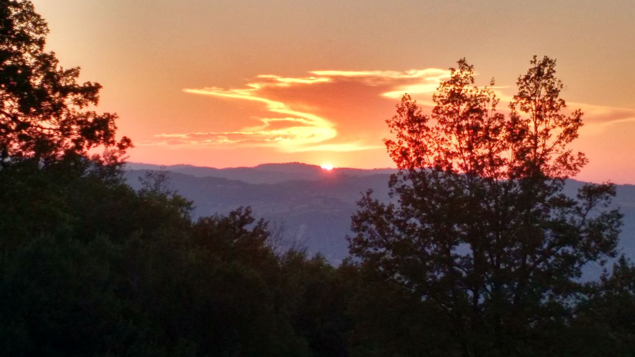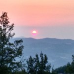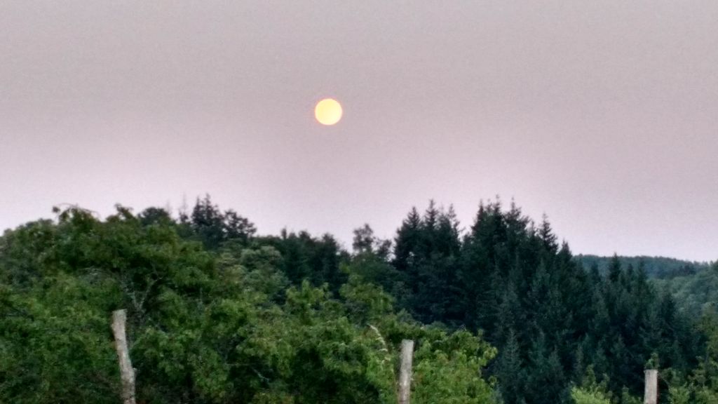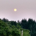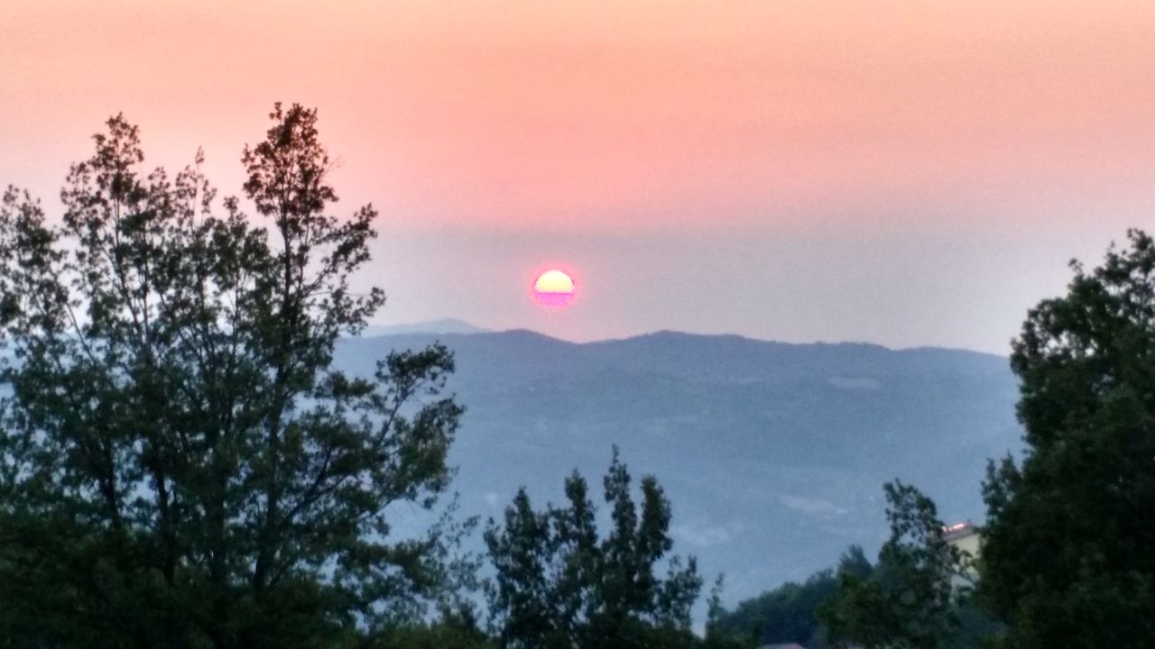 Il sole infuocato al tramonto e la luna piena 45 minuti piu tardi